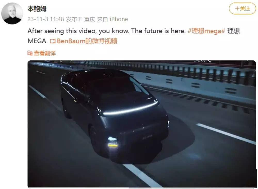 DoNews11月6日消息,11月3日中午,认证为理想汽车高级设计总监的本·鲍姆发布旗下首款纯电MPV Mega首个宣传视频。但有网友发现,视频中的Mega在16秒的视频中涉嫌连续变道,违反了交通法规。截至发稿,该视频已删除。