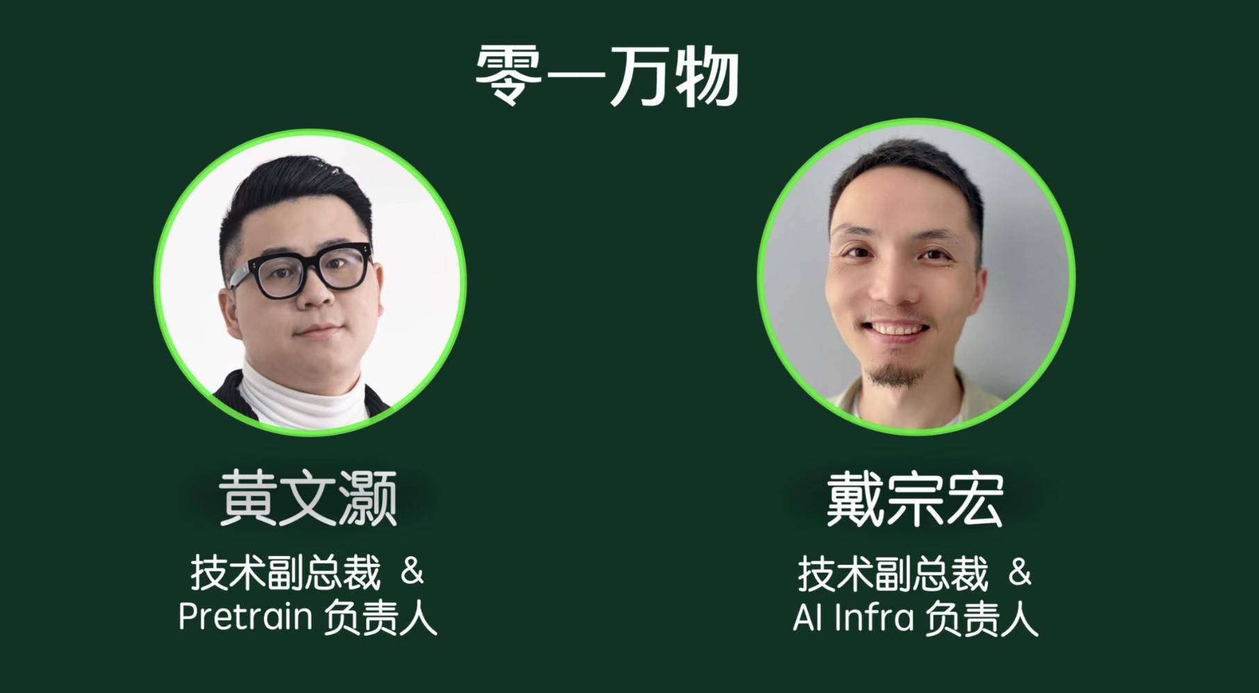 零一万物预训练负责人黄文灏,零一万物AI Infra副总裁戴宗宏。