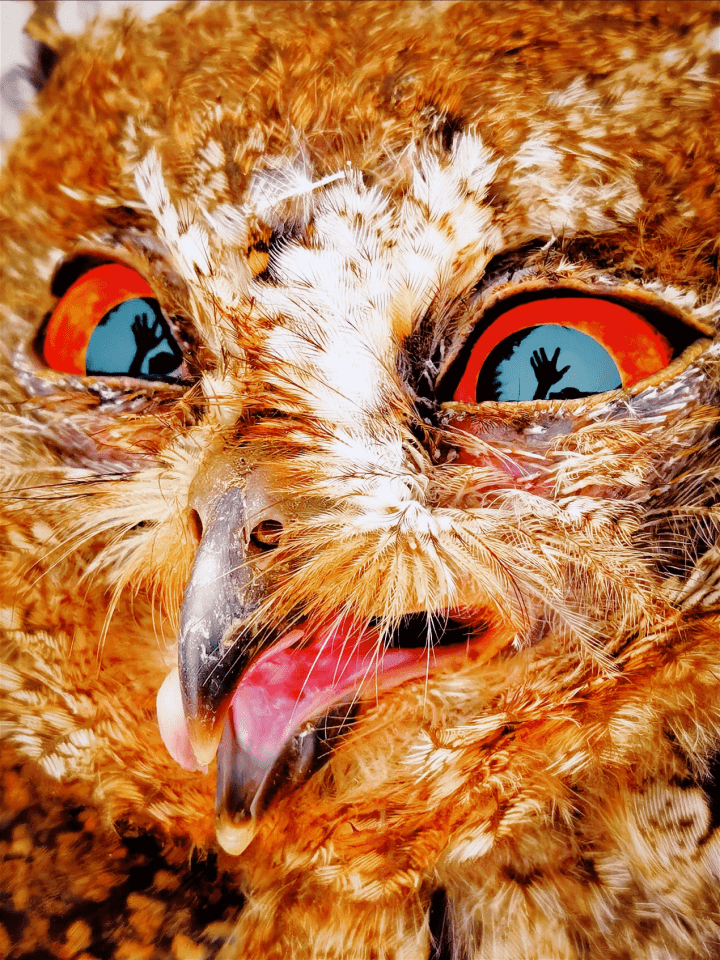 在窦传利的作品阐释中,鹰被赋予了勇敢、不屈不挠的象征意义,它们不会畏惧任何困难和危险,拥有顽强的意志。正如当背后的那只黑手伸出来的时候,鹰的眼神依旧坚定而锐利,如同在说:“我本如鹰,临危不惧!”