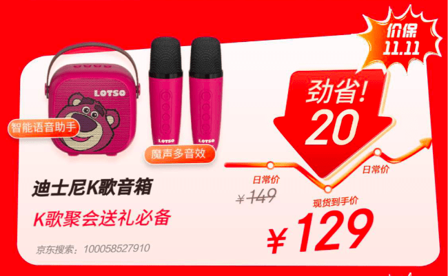 繁忙的工作之外,张弛有度,大家也要更好的热爱生活,享受放松和休憩,用一些装备可以更好的提升休闲品质,比如这款迪士尼无线K歌麦克风套装,小巧迷你随身携带,随时开启KTV模式,不管是放车上还是包里,无论是在家休息还是外出旅行,带上它就可以享受音乐,野餐旅行聚会随时想唱就唱,京东3C数码配件11.11价格也只需要129元,超便宜闭眼买就对了。