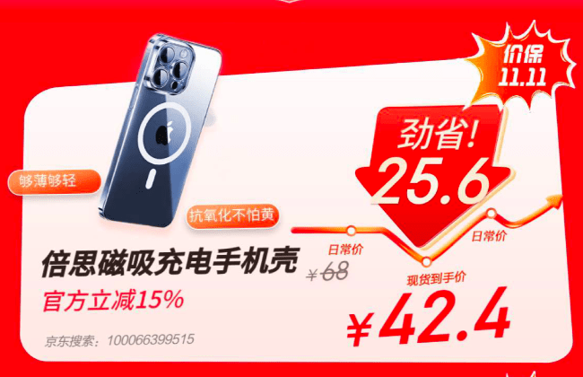 这款手机壳采用真机开模,完美贴合手机,提供全方位保护,它还支持无线充电,让你随时随地为手机充电,无需担心电量不足。这款倍思磁吸充电手机壳采用优质材料制作,不仅轻薄,而且抗氧化,不怕黄变,即使长时间使用,依然保持如新的亮丽色彩。更令人惊喜的是,现在购买倍思磁吸充电手机壳,京东立减15%!实际到手价仅需42.4元!这么优惠的价格,赶快行动吧,让你的手机焕发出全新的光彩。