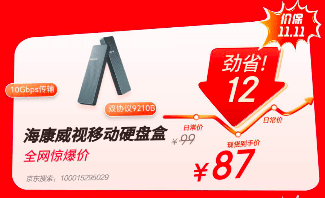办公有神器,这里同样也有一款海康威视的双协议移动硬盘盒,同时支持M2NVMe协议和M2SATA协议硬盘,高速读写强效散热,性能更加稳定,该移动硬盘盒采用全铝合金材质和高精度的CNC工艺,有效解决了散热问题。它也能兼容多个操作系统,无需安装驱动程序,现货到手价也只需87元。