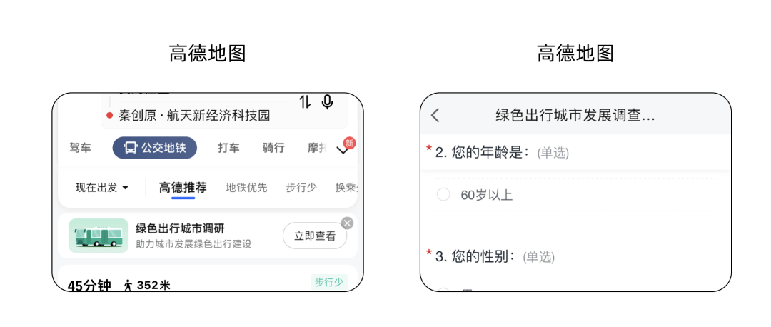 对于(1)(2)还需考虑是否再次展示,以及再次展示的规则是什么,比如高德地图调研活动的消失规则是,完成问卷调查或者点击关闭后才会完全消失(实际使用测试获得)。