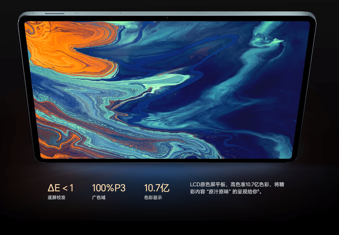 屏幕是13英寸LCD屏,分辨率2880x1840,144Hz高刷,100% P3色域,700nit峰值亮度。具有8扬声器,4麦克风,也是达到了空前的数量。获得IMAX Enhanced严苛认证,以及QQ音乐认证的空间音频平板身份。