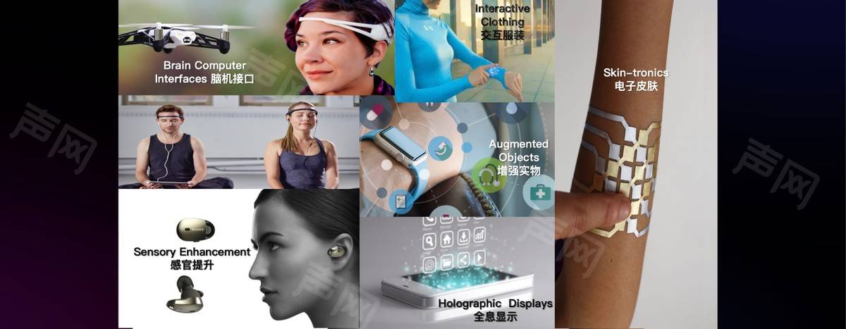 在AI和RTE技术的加持下,新的穿戴设备可能会进入市场,比如新的皮肤电子设备、感官增强设备等,它可以让我们听到人类听力范围之外的频率。此外,脑机接口也将读取我们的脑电波,从而帮助我们实现冥想或对其他设备的控制。AntHap正在做这样的感官维度互动实验,你坐在一个蓬松椅子上,它会给你触觉反馈,让你与正在观看的内容同步振动,这样的技术也正在被嵌入到汽车中。