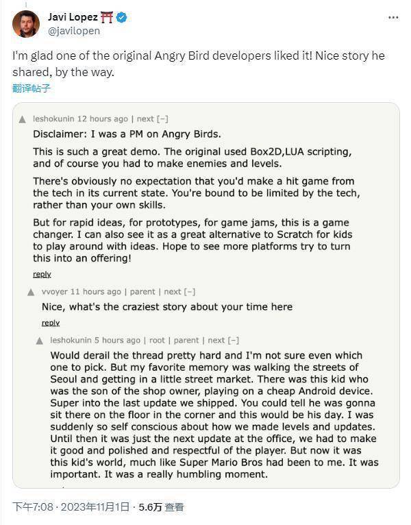 “但对于灵光一闪的创意、原型制作和游戏创作瓶颈期来说,这会是改变者一般的存在。我也可以把它视作是Scratch(一款面向孩子的开发软件)的良好替代品,让孩子们可以自由发挥创意。”《愤怒的小鸟》的项目经理Leshokunin说到,他还表示,“希望看到更多平台尝试将其转化为产品。”