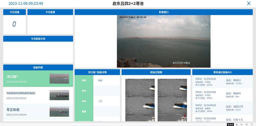 据悉,该系统包括检测相机、抓拍相机、船舶AIS接收机、抓拍控制等设备,利用人工智能可以主动、精准感知进出港池船舶的身份、尺寸、空重载、货种、局部特征等信息,识别船名标识不规范、超载船、AIS未开等多种违章行为。通过夜视功能真正意义上做到7×24无间断监控。