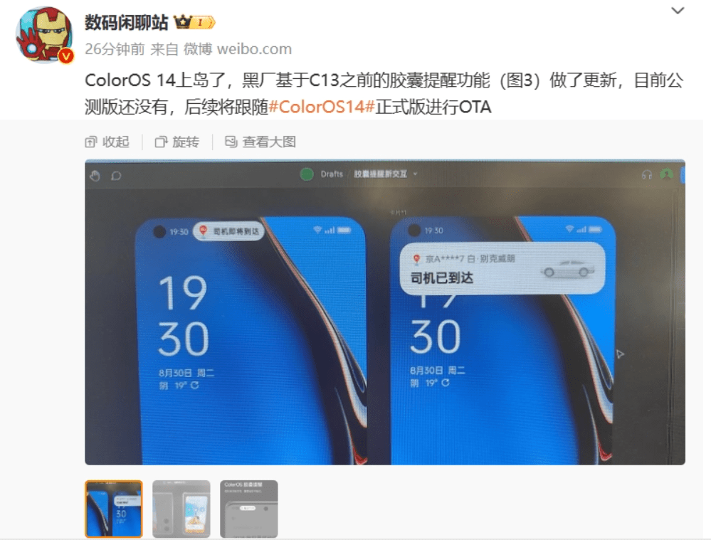 2023 OPPO 开发者大会将于 11 月 16 日在上海世博中心举行,届时将正式发布 ColorOS 14。据博主 @数码闲聊站 爆料,OPPO 也将在 ColorOS 14 系统“上岛”,基于在 ColorOS 13 系统中的“胶囊提醒”功能进行改进。此外,超级中转站等功能后续将跟随 ColorOS 14 正式版进行 OTA。