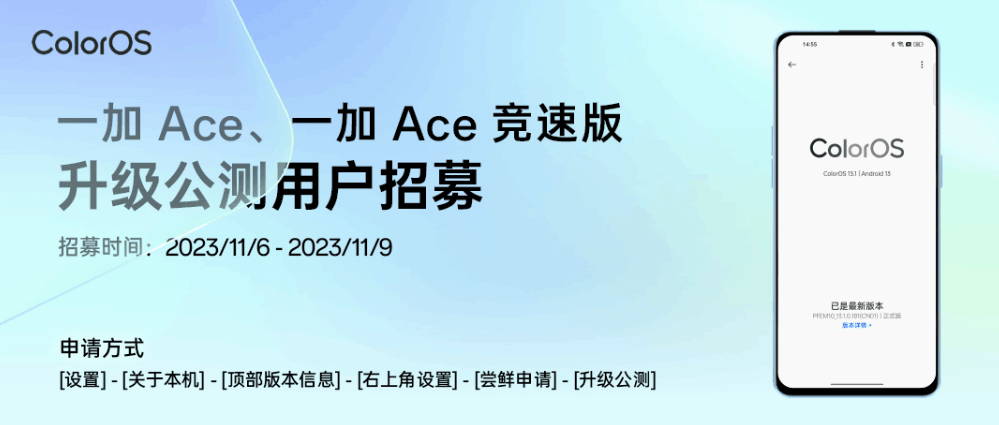 IT之家 11 月 6 日消息,OPPO ColorOS 今日宣布,一加 Ace、一加 Ace 竞速版开启 ColorOS 14 x 安卓 14 升级公测招募,报名时间为 11 月 6 日到 11 月 9 日。