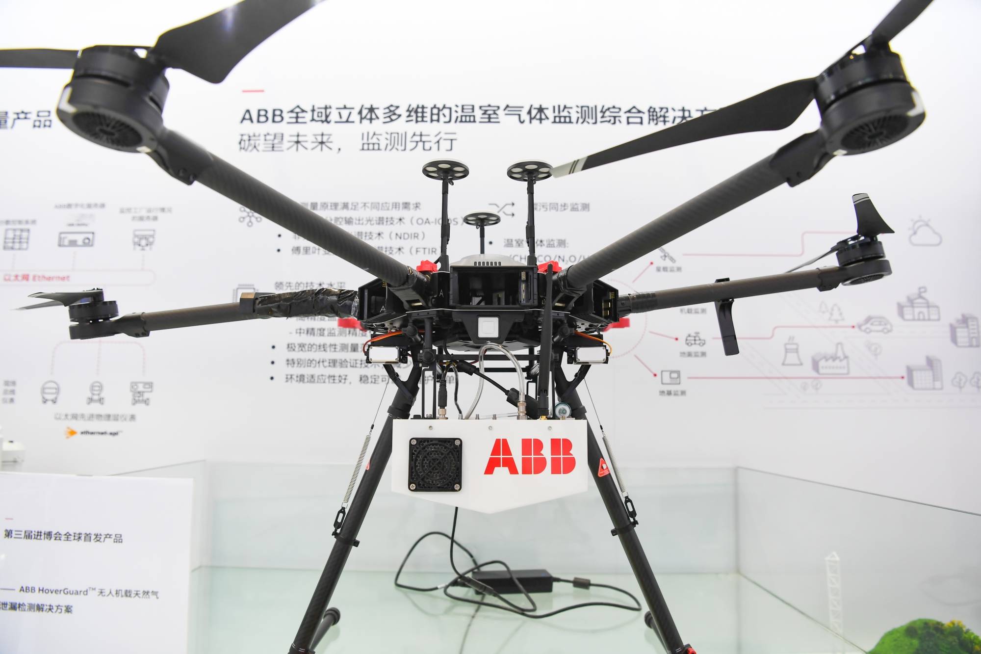 第六届进博会上ABB带来的无人机载天然气泄漏检测解决方案。