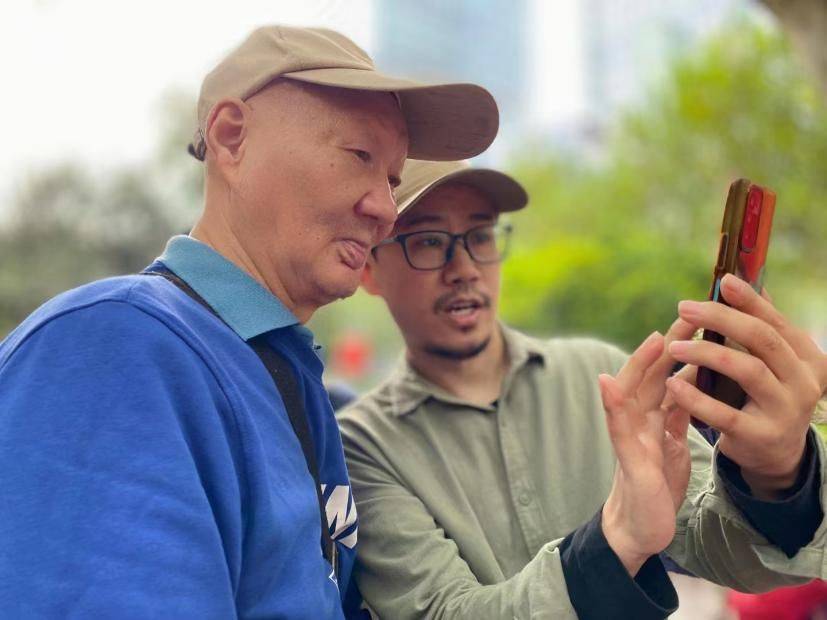 同时,为了打造多样课堂互动形式、进一步激发老年人的学习兴趣,金秋时节,杨健带领老年学员们行走音乐街区,开展实景外拍采风活动。为了让老年学员们能更有效地吸收理论知识、强化拍摄技巧,杨健既做老师又当模特,亲身指导学员们怎样拍摄更好看:降低机位找到更好构图、增大光圈达到最佳虚化、拨动快门抓住凝固瞬间....