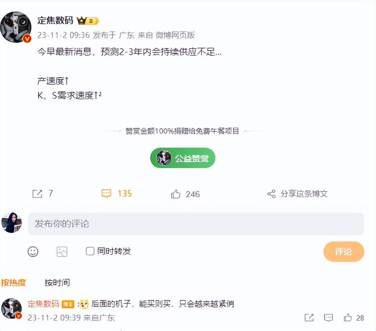 根据目前消费者购机的反馈以及业内的爆料来看,华为手机将持续面临供应不足的问题。11月2日,有数码博主爆料称,华为手机2-3年内会持续供应不足 。博主还在评论区表示:后面的机子,能买则买,只会越来越紧俏。