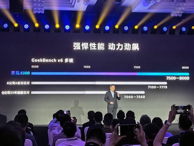 纵向对比行业竞品,天玑9300在GeekBench v6的跑分中,多核性能可达7500-8000分,一举超越苹果A17 Pro和高通第三代骁龙8两大旗舰芯片。
