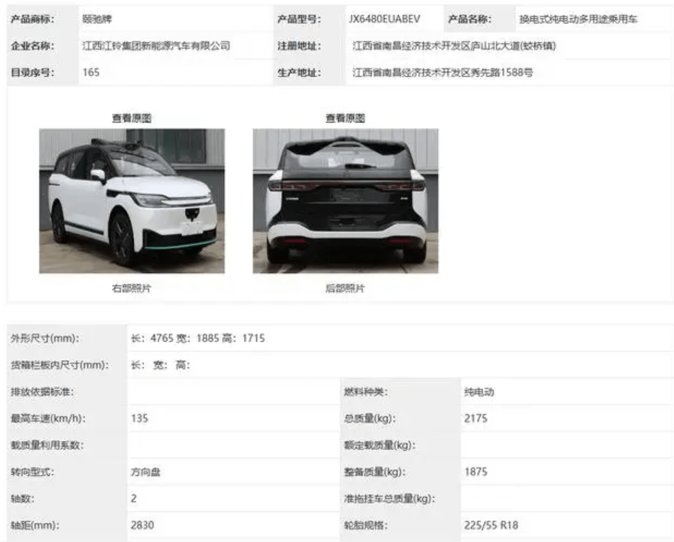 从此前公布的申报信息来看,该车被定义为“换电式纯电动多用途乘用车”,生产企业为江铃集团新能源汽车有限公司。虽然车尾标注了RT6,但产品商标还是显示为“颐驰牌”,这也是继大道之后,江铃推出的又一全新品牌,不过目前官方对此还没有更多消息爆出。