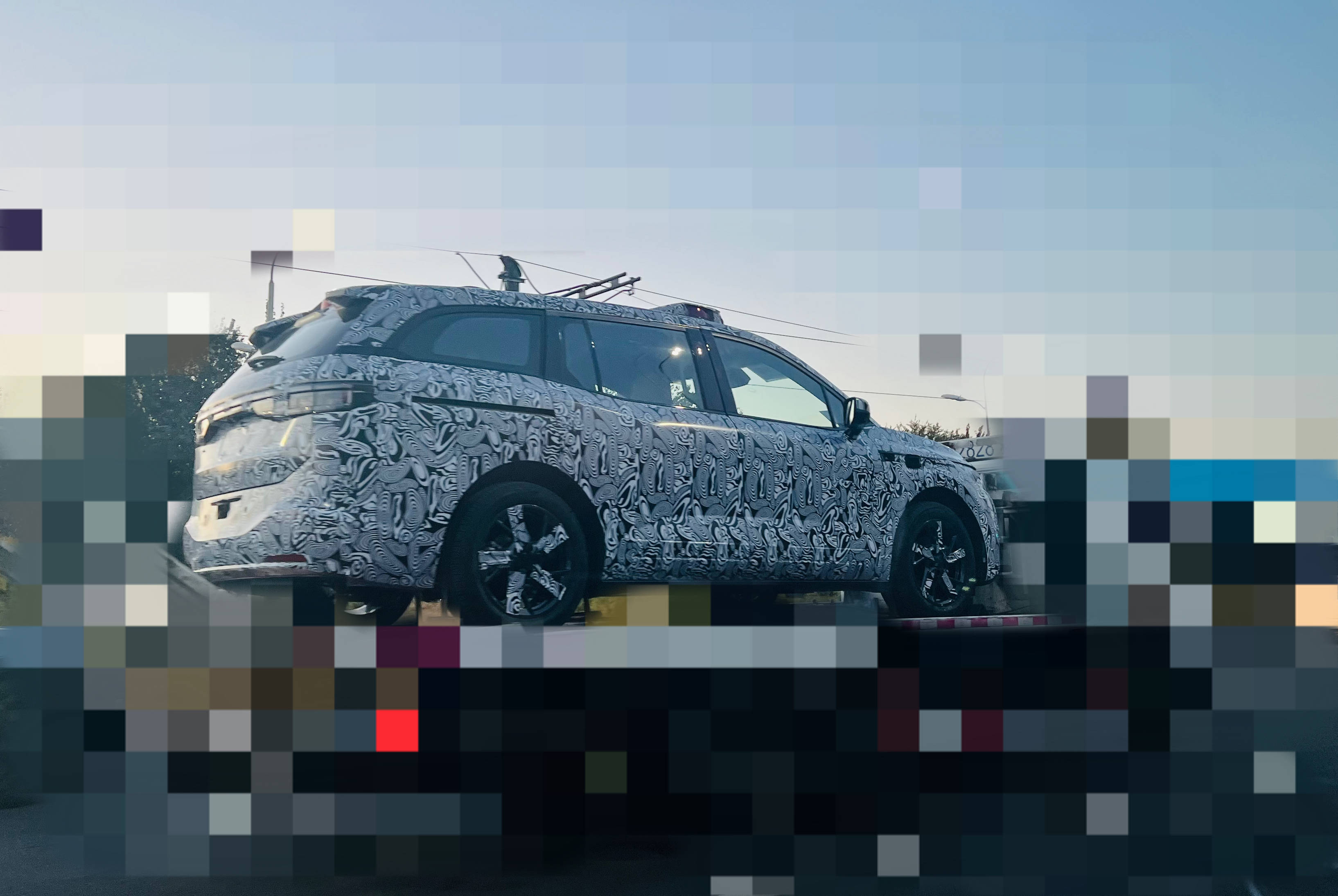 造型方面,新车多用较为圆滑的曲面设计,车头处采用双层贯穿式大灯设计,封闭式格栅下方带有一处开口,内部搭载一块疑似激光雷达的传感器装置。