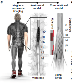 被试者是一位62岁的男性,患有帕金森病30年,经药物和深部脑刺激治疗仍有严重的运动障碍。研究人员首先生成了EES针对的脊髓区域定制化解剖图,指导精准外科植入神经假体。随后用患者穿戴的无线传感器检测移动意图,触发EES激活腿部神经产生自然的步行动作。研究结果表明,神经假体改进了被试者的步行和平衡障碍,他进一步报告了生活质量的显著改善(患者现在已经使用该假体两年,每日约8小时)。
