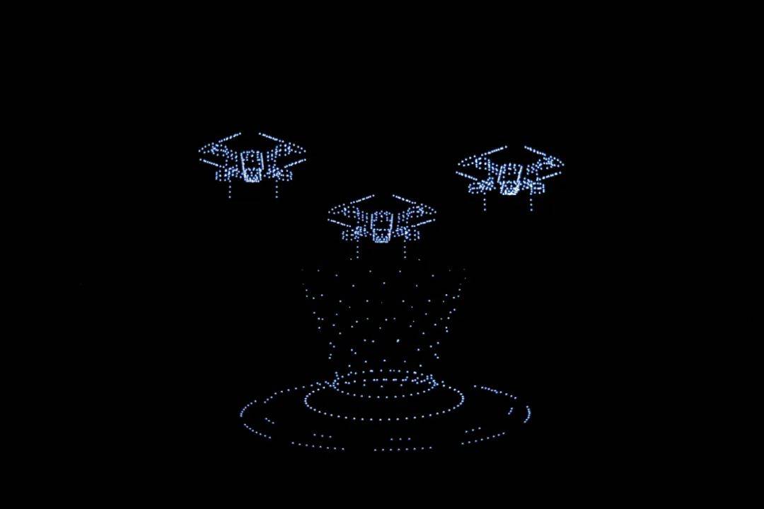 每架飞机的轨迹都是经过精准计算和反复测试的。在设计阶段,工作人员会将文字、图像等表演内容以三维动画的形式制作出来,然后用软件通过算法为上千架无人机生成单独的飞行轨迹。