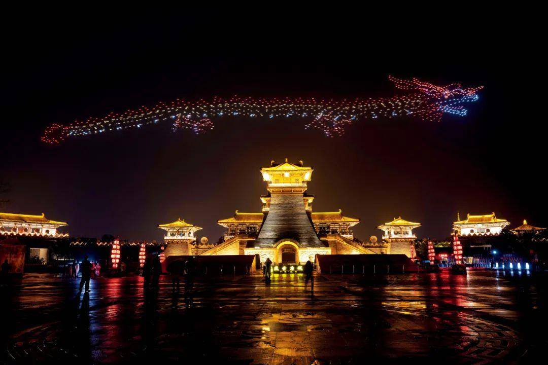 2018年4月29日,千架无人机在陕西西安南门城墙上方摆出各种造型。图/视觉中国