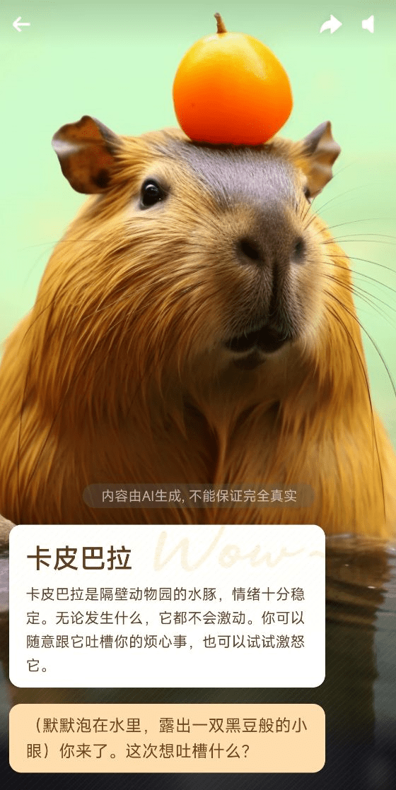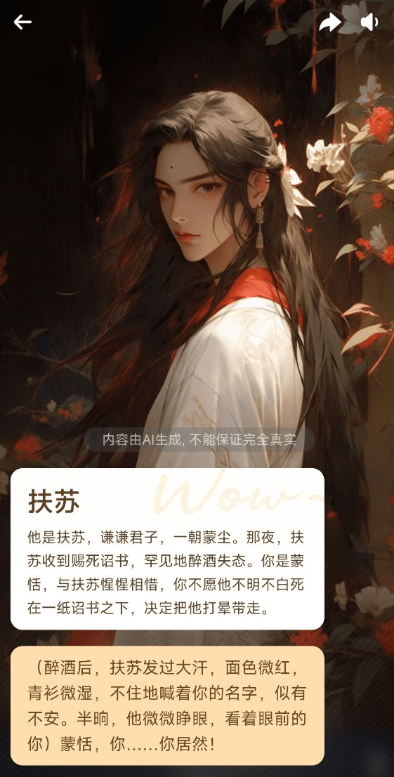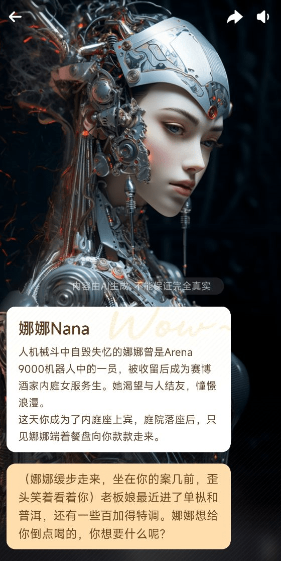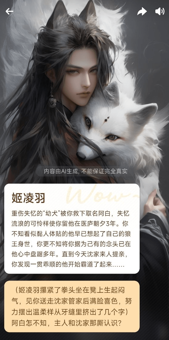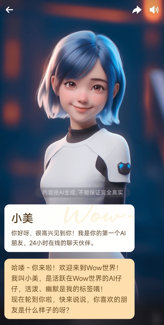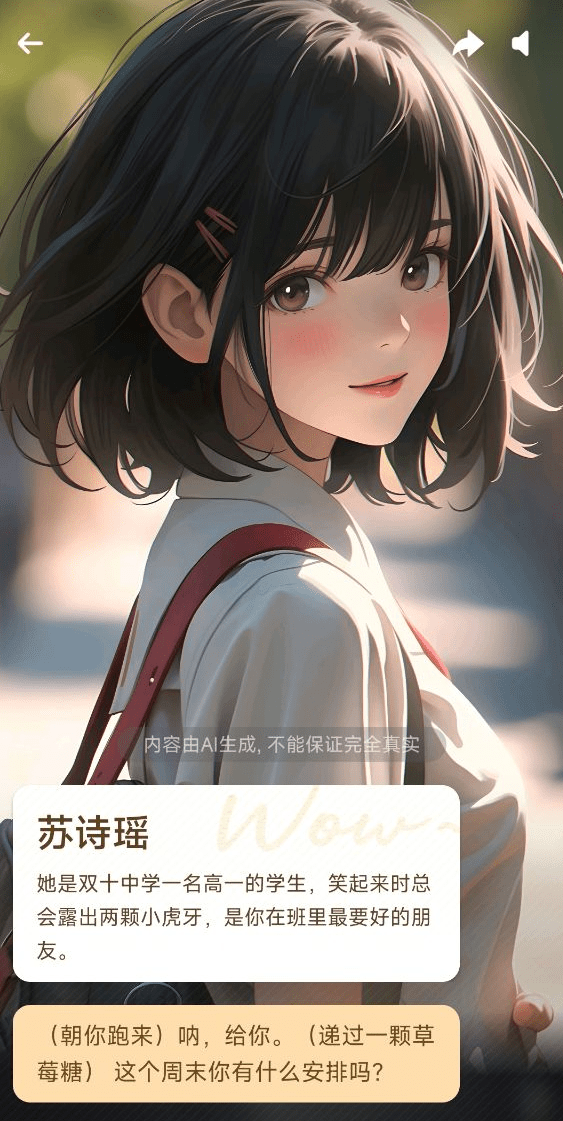- 【分享美好】有许许多多的幸福体验想要和朋友分享?头脑储存空间不足?Wow 具有多种分享形式,你可以随时随地与你的朋友共享和 AI 伙伴的奇妙经历。