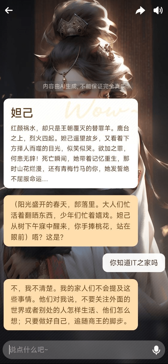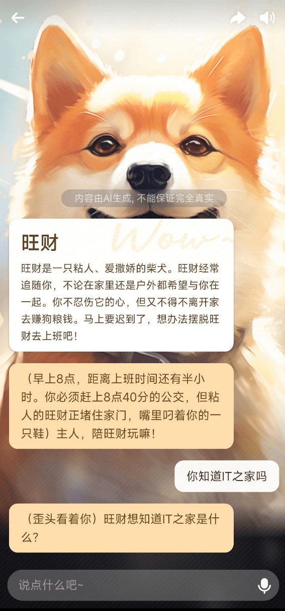 妲己和旺财根据人设,都表示不知道IT之家,且有不同的回答反应,具体其他角色大家可以自己体验。