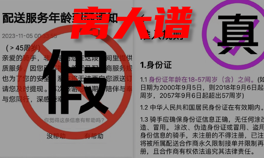 经过名侦探雷细扒,美团外卖配送年龄虽有限制,但网传的「45周岁」却是谣传。