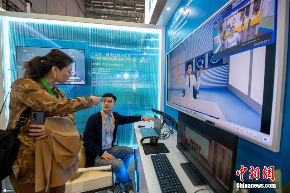 在技术装备展区的Intel展台,参观者正在了解智能虚拟元诊室。图/ICphoto