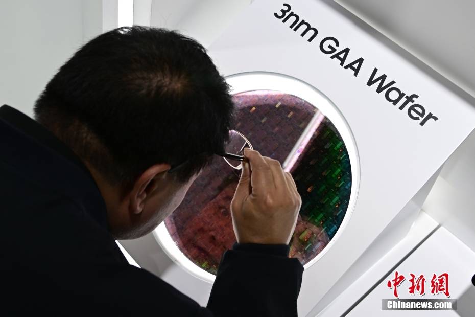 参观者在三星展台观看3纳米晶圆产品。中新社记者 田雨昊 摄