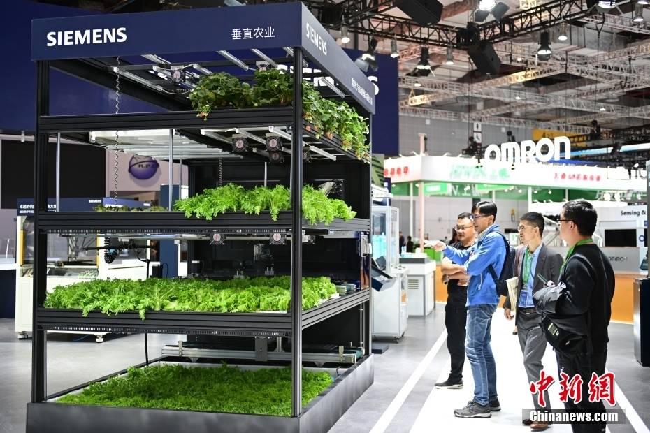 观众在西门子展台参观垂直农业。中新社记者 田雨昊 摄