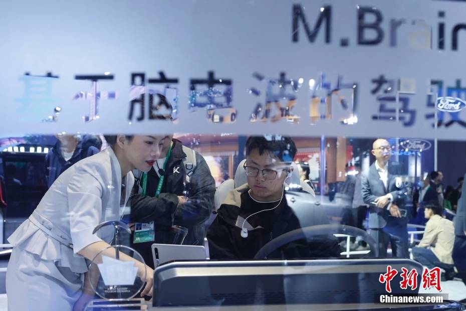 观众在了解全球500强企业、世界第六大汽车零部件供应商摩比斯推出的全球首款基于脑电波的驾驶员状态监测系统M.Brain2.0。中新社记者 殷立勤 摄