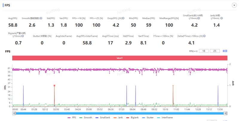 结果平均帧率达到58.8FPS(体质好的机器上可以超过59FPS),也相当稳定,而平均功耗为5.13W。