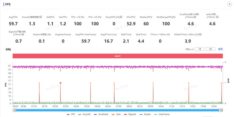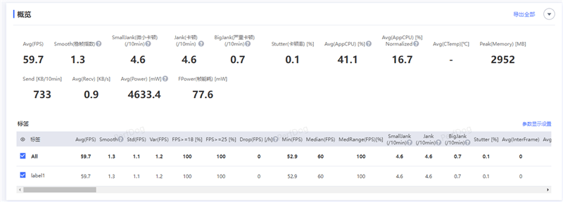 结果平均帧率达59.7FPS,曲线十分稳定,平均功耗则是4.63W。