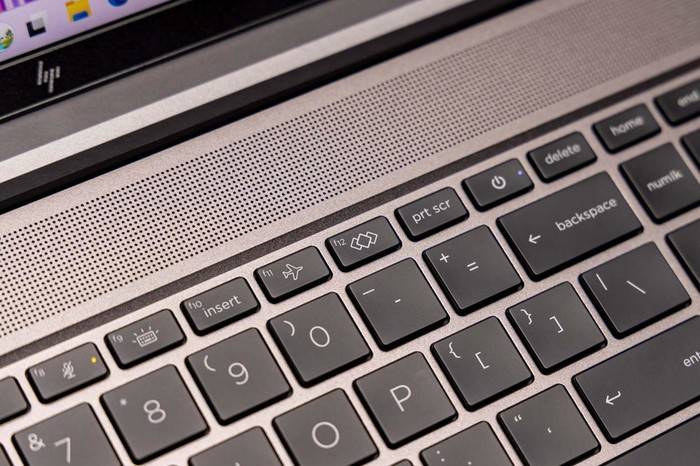 在键盘的配置上,惠普战99锐龙版移动工作站选用静音防泼溅键盘,附带数字小键盘区,这样在移动办公的时候,对于经常需要输入数字的用户来说非常友好,免去了外接键盘的麻烦。同时键盘背光的加入,在会议室、机舱内关灯的情况下,仍然可以看清键盘上的图标,并且不会影响到周围的人。