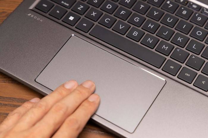 在触控板部分,惠普战99锐龙版移动工作站操作起来十分顺滑,光标从屏幕最左边滑动到最右边,只需要一次操作即可实现。并且它还支持多点触摸手势操作。