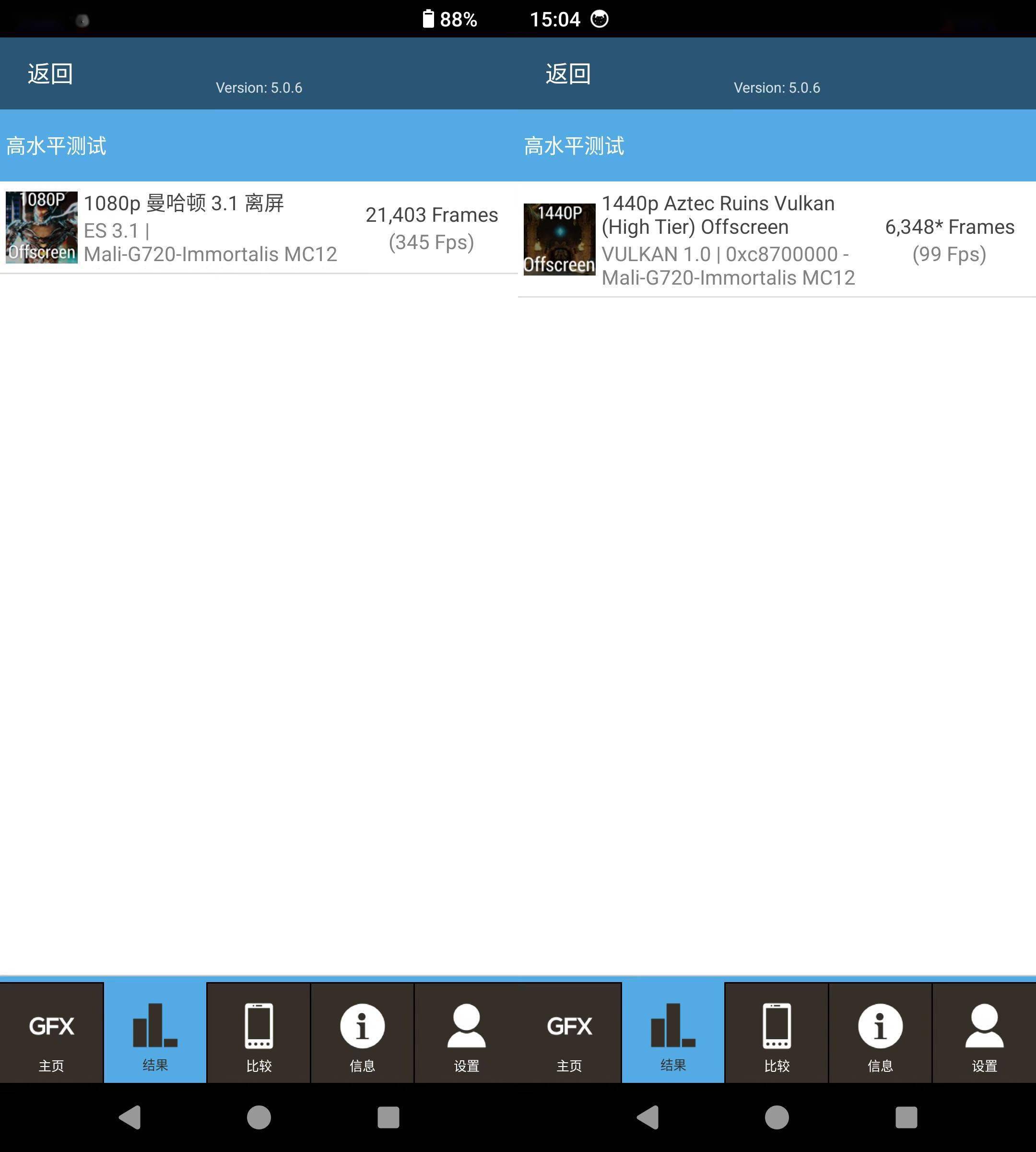 接着是考验GPU性能的GFX Bench测试,曼哈顿3.1 1080P离屏项目中,天玑9300跑出了345FPS的成绩;Aztec 1440P Vulkan项目中,天玑9300跑到了99FPS。均大幅领先同代竞品,赢得GPU性能第一。