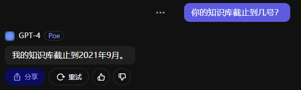 当前可以使用的GPT-4 API模型的知识库截止到2021.9