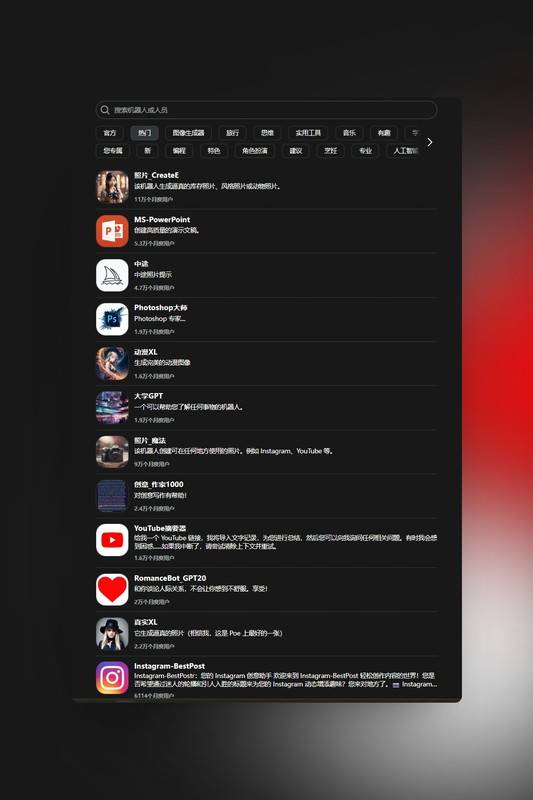 在POE中,用户可以在搜索区域找到多达数百个的AI机器人模型,来实现不同的功能与价值。这种开放性和可定制性对互联网行业具有颠覆性的影响,主要是因为它们降低了AI技术的门槛,使得更多的用户能够参与到AI的创建和应用中来。用户可以无需编程就能够构建出自己的AI助手,这大大降低了AI应用的复杂性,提升了AI的普适性和易用性。