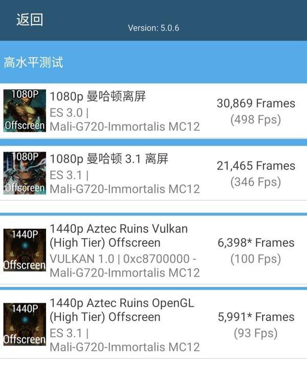 我们使用GFX Bench测试了Immortalis-G720的能力。在曼哈顿离屏测试以及Aztec Ruins等测试项目中,天玑9300的成绩都相比此前有显著提升,GPU在旗舰芯片中性能第一,这也让我们更加期待搭载天玑9300的终端,在游戏体验上将为我们带来哪些新的提升。