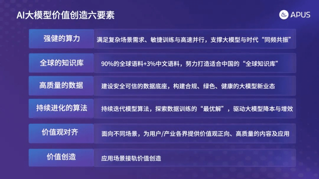 (APUS李涛创新提出AI大模型价值创造“六要素”)