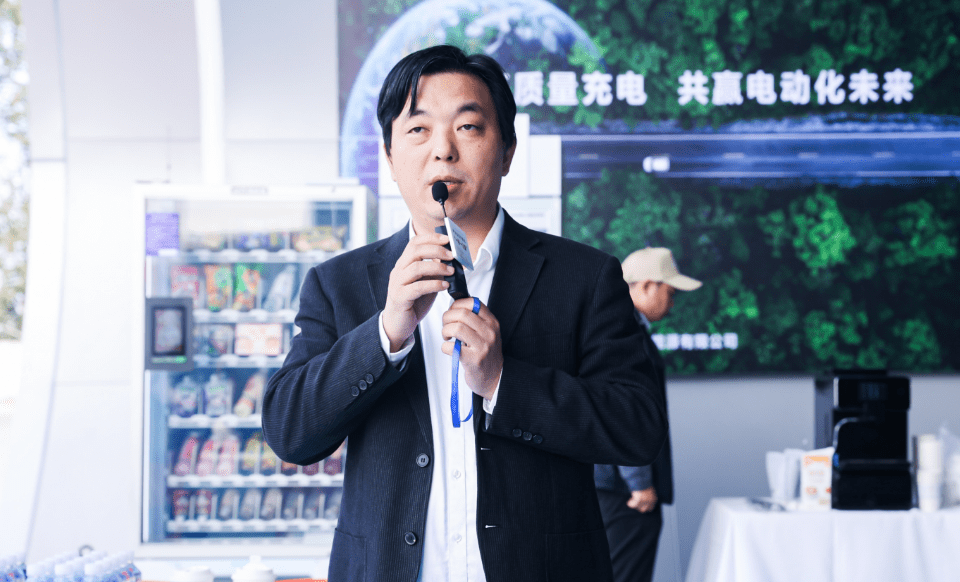天津高速公路集团有限公司副总经理闫卫喜介绍超充站情况