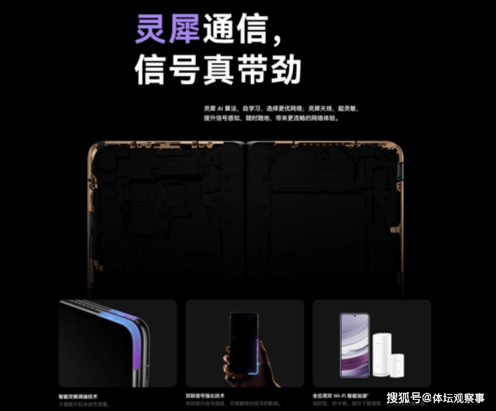 华为Mate X5搭载的灵犀功能,是通过灵犀天线、灵犀网络和灵犀算法三大技术共同实现的。首先,灵犀天线采用了环绕式天线布局,这种设计使得手机在任何状态下都能保持良好的信号接收能力。同时,双联信号强化技术使得信号接收能力得到进一步提升,彻底解决了握持状态影响天线收发信号的问题。