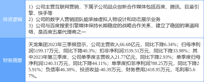 证券之星消息,天龙集团涨停收盘,收盘价7.68元。该股于10点3分涨停,6次打开涨停,截止收盘封单资金为1372.07万元,占其流通市值0.29%。
