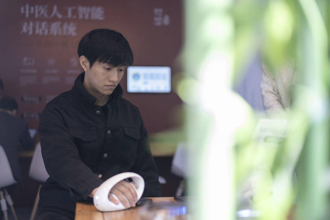 11月7日,2023年世界互联网大会乌镇峰会“互联网之光”博览会在乌镇开幕。在B馆一展位,一款智能中医体检仪吸引了不少观众体验。