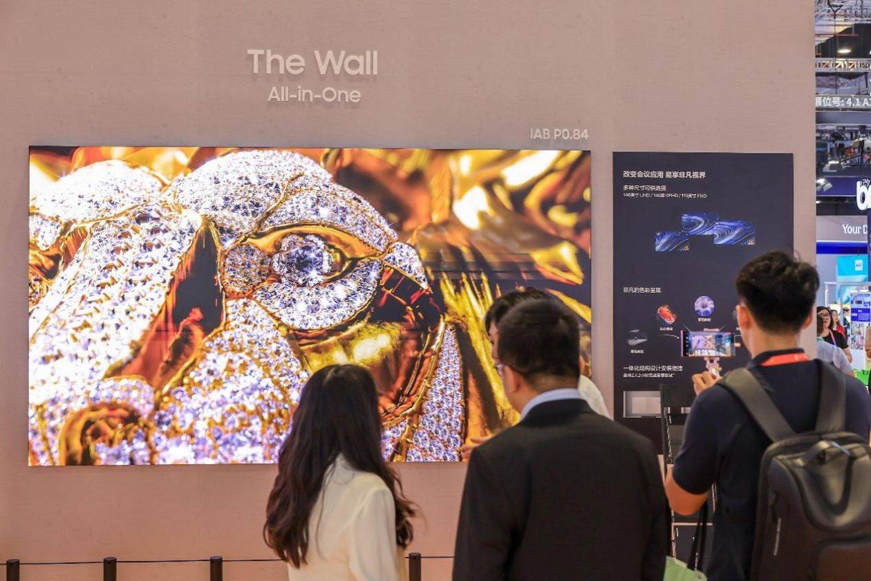 三星还在本届进博会上带来了The Wall商用显示屏。三星The Wall产品使用了三星在MICRO LED领域的独家显示技术,能够纯净地表达出图像中的每一种颜色。MICRO AI处理器提供多元智能AI影像增强功能,呈现高端画质效果。超微间距技术和超低反射膜,展现了极强的黑色和灰阶表现力,20位处理技术可以自动分析并优化影像。在动态效果方面,通过优化供电效率与视频信号,The Wall画面平滑顺畅,为用户带来沉浸式视觉享受。