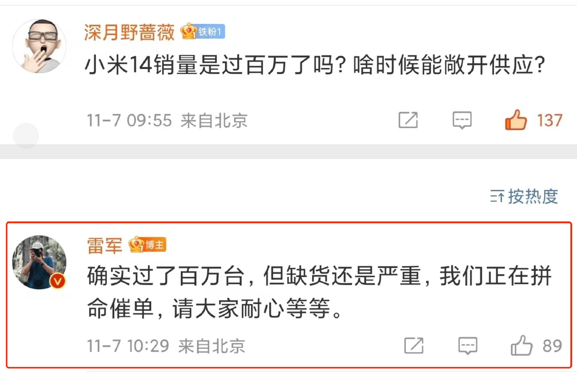 根据部分数码博主估算,小米14系列的销量已经过百万了,而有部分网友则认为,如果过百万,为何不张灯结彩,大肆宣扬呢?说不通!就在今天,雷军证实,小米14系列销量已经突破百万,不用再质疑了,结果已经确定了!