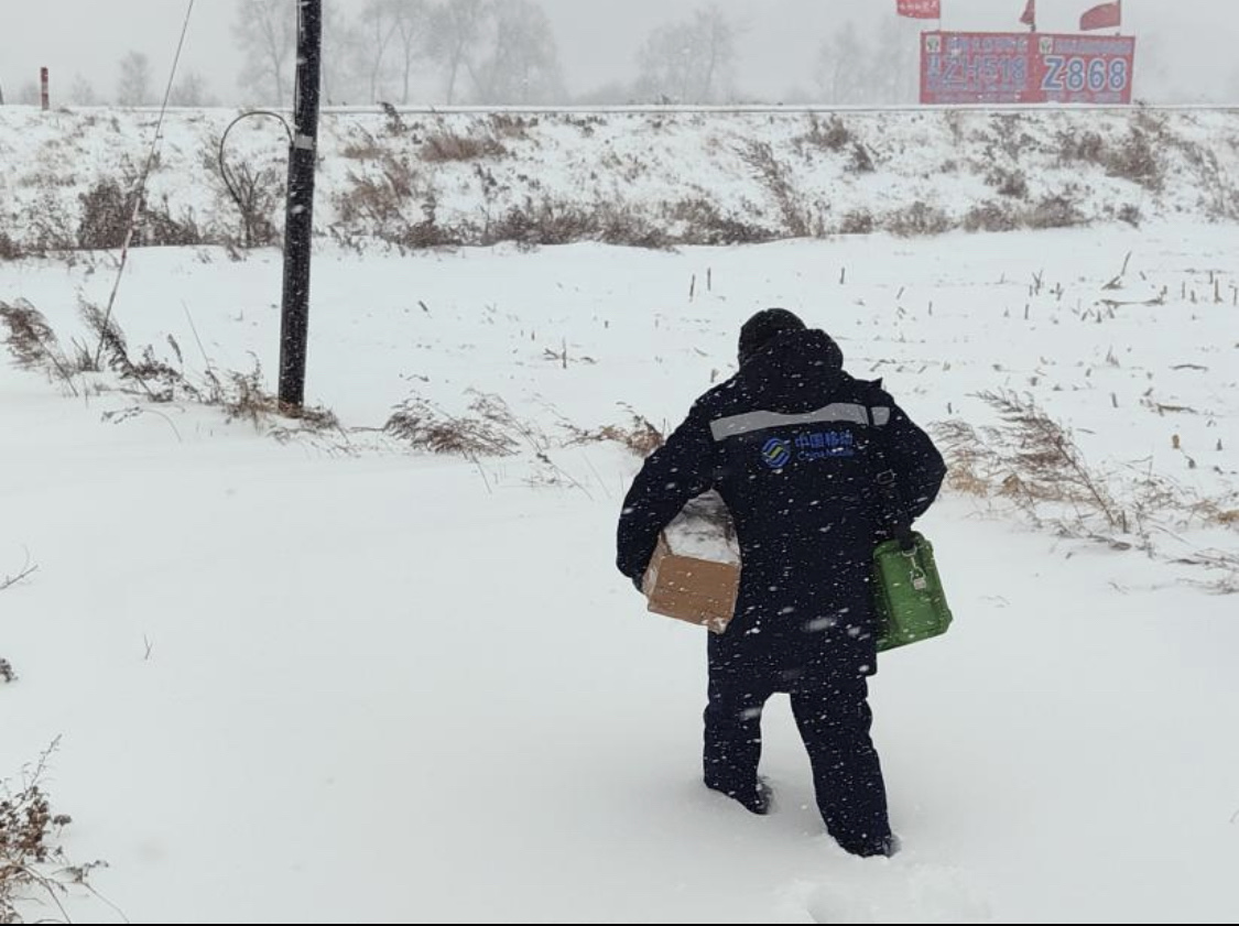 移动抢修人员冒雪前行,克服气温低、天黑、路滑难行等困难,有条不紊地开展网络通信保障工作。尽管降雪量大、积雪明显,但黑龙江移动网络保障人员积极抢修,尽最大努力降低重大故障发生率,确保网络运行平稳。