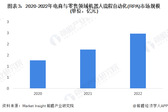 3、2022年电商与零售领域RPA市场规模达到3.7亿元