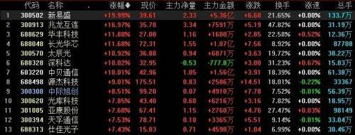 盘面上,算力概念股集体走强,中贝通信、恒润股份、鸿博股份、高新发展等近10股涨停。CPO概念股午后大涨,新易盛20CM涨停,兆龙互连、太辰光涨超10%。短剧概念股继续活跃,天威视讯4连板,中文在线涨超10%。AI PIN概念股盘中走强,朗迪集团、博硕科技、伟时电子等涨停。此外,“龙字辈”概念股继续活跃,天龙股份10连板。下跌方面,旅游酒店股陷入调整。总体上个股涨多跌少,两市超2700只个股上涨。