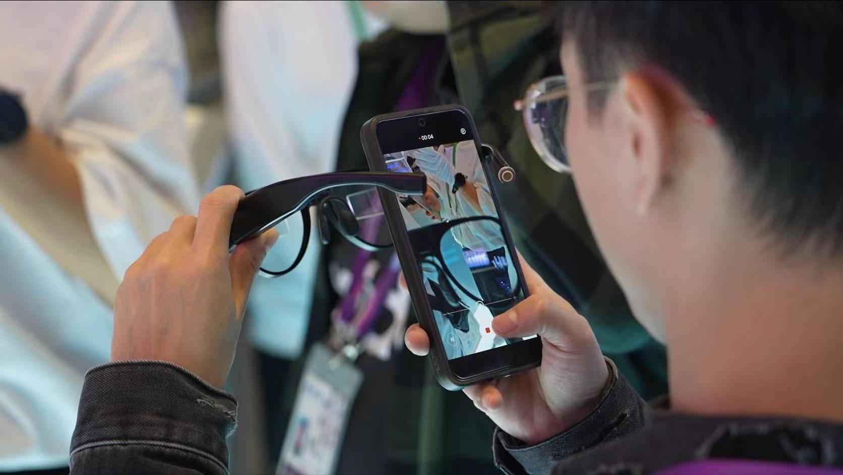 戴上一副轻巧的智能眼镜,参观者就能实时获取展位信息、在85寸大屏上观看展品视频介绍,看一眼展区工作人员,就能立即了解他们的姓名和个人介绍……在进博会人工智能体验区,专注于打造全天候智能眼镜创业公司的奇点临近就带来了这一颇具未来感的观展体验。