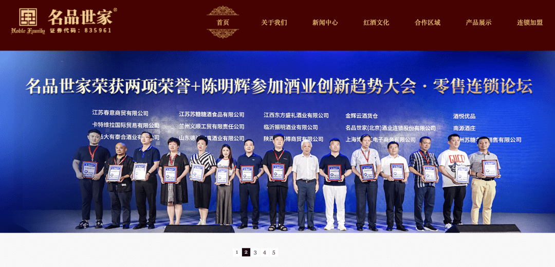 2008年,名品世家酒业连锁股份有限公司成立,以特许经营为主要模式,逐步形成了“线下店商+线上电商+跨界营销+酒类金融”等多元化的发展模式。
