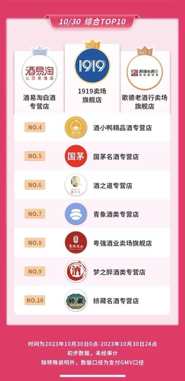 今年618,1919发布战报称1919天猫GMV2.48亿,包揽天猫食品行业第一、酒水类目第一;1919抖音GMV2.03亿、1919快手GMV1.26亿(店铺合并成交),荣获抖音、快手酒水行业双冠王。